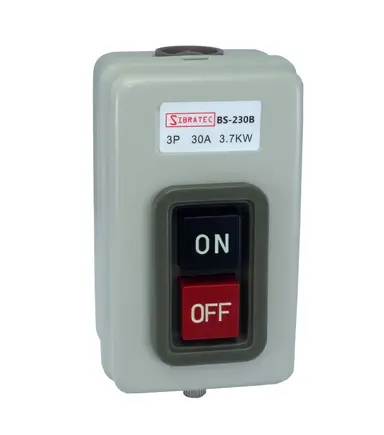 A Botoeira De Partida Direta BS230B – É uma Chave de Partida para Motores Trifásicos de 5HP/7.5HP/10HP/12.5HP/15HP EM 380- ou com uma corrente máxima de 30A. A Botoeira é um Dispositivo de Comando para estabelecer ou interromper a carga nesse circuito, devendo ser acionado manualmente. Conta com uma excelente relação custo benefício.